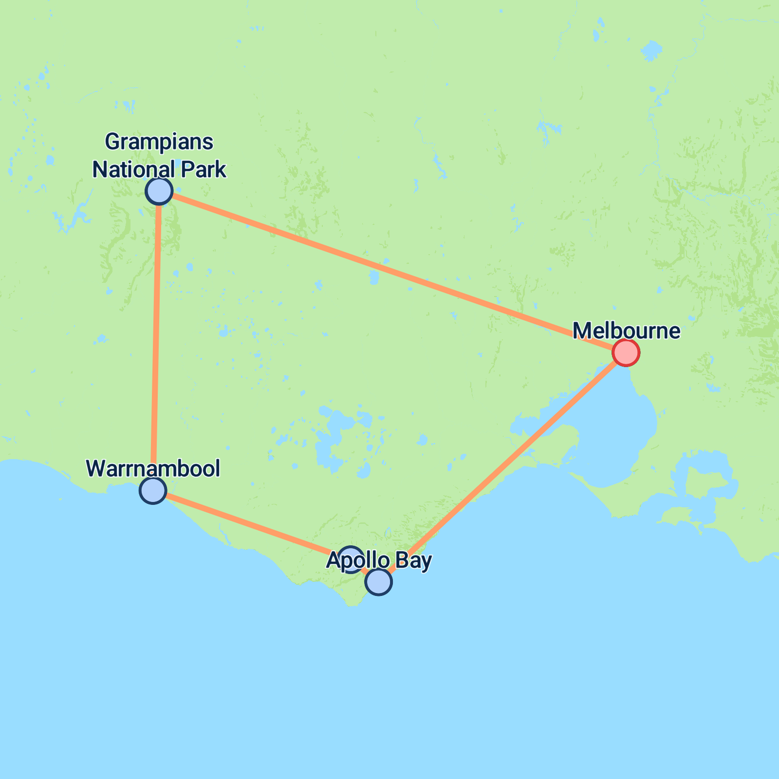 Melbourne - Apollo Bay - Great Otway National Park - Warrnambool. Today, you will be picked up at 7:35 AM from the Immigration Museum as we set off along the spectacular Great Ocean Road. This iconic coastal route is renowned for its sweeping ocean views and world-class surf beaches. Along the way, we pause to see wild koalas in their natural habitat before continuing to Apollo Bay, a charming seaside town where we stop for lunch.