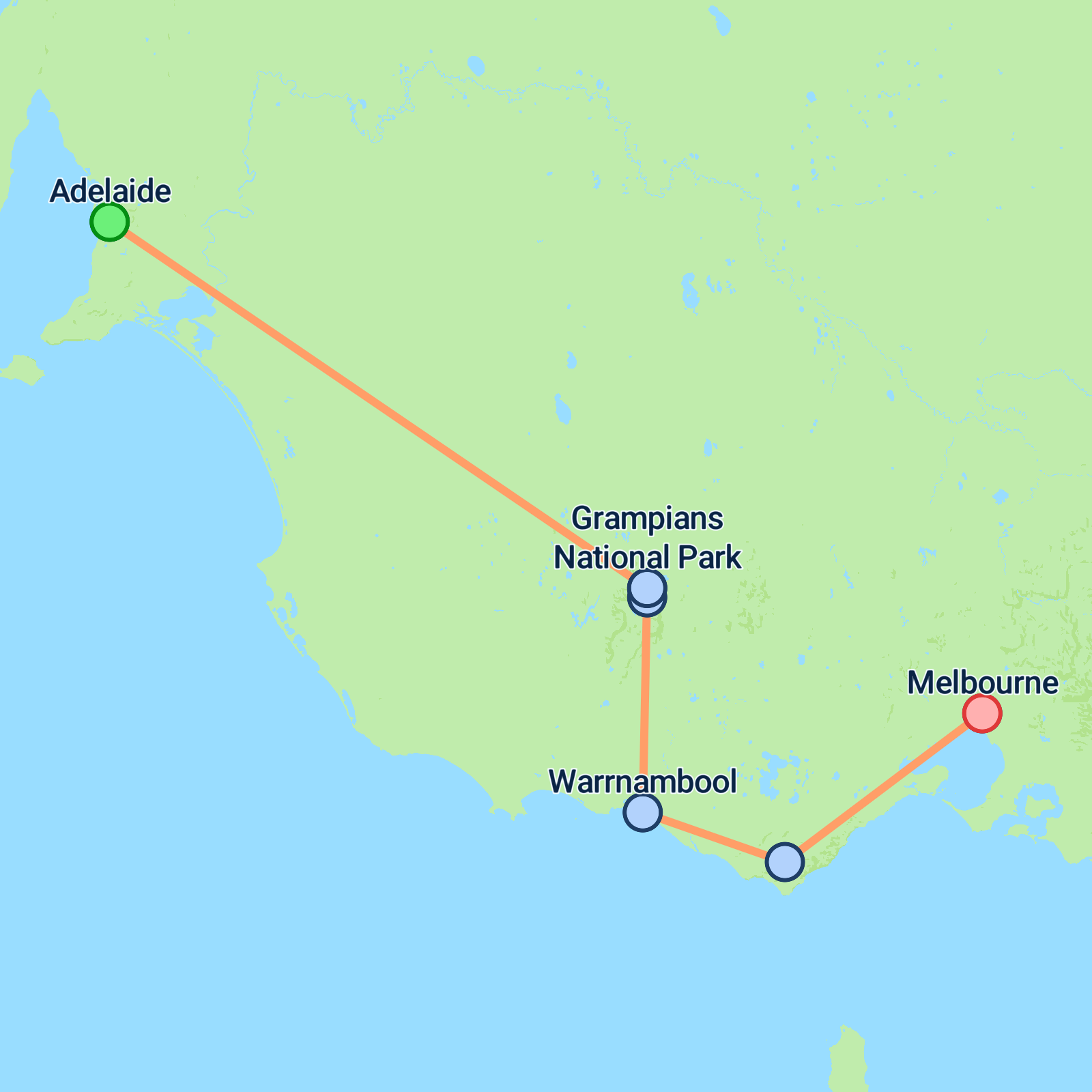 Embark on a 3-day tour from Adelaide to Melbourne, taking in mountains, wildlife and coastal beauty. Discover Grampians National Park with Mackenzie Falls, The Balconies, Boroka Lookout and the Pinnacle. Visit Tower Hill Conservation Reserve, an extinct volcano rich in Aboriginal heritage, before reaching the coast. Conclude with the Great Ocean Road, featuring the 12 Apostles, Loch Ard Gorge, London Bridge, lush rainforest in Great Otway National Park and famous surf beaches.