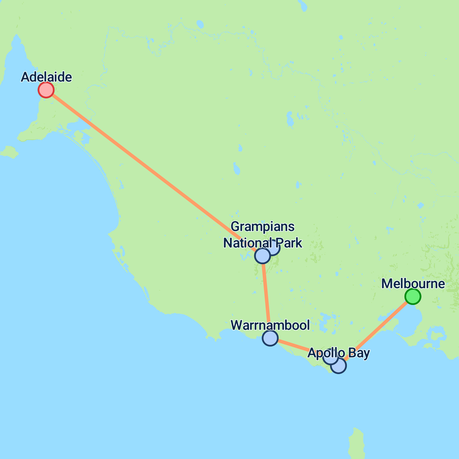 Experience a 3-day journey from Melbourne to Adelaide, showcasing some of southern Australia’s most breathtaking landscapes. Follow the iconic Great Ocean Road, home to surf beaches, wild koalas and the dramatic Twelve Apostles, before venturing into the lush rainforest of Great Otway National Park. The adventure continues in the Grampians with native wildlife encounters and hikes to sweeping lookouts including the Pinnacle, The Balconies and Boroka. Conclude with the thundering Mackenzie Falls and striking scenery en route to Adelaide.
