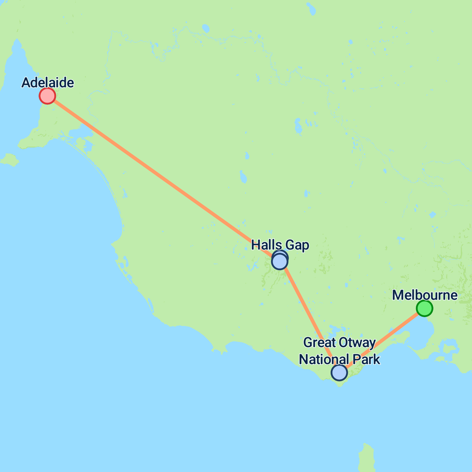 Explore the best of southern Australia on a 2-day tour from Melbourne to Adelaide. See the iconic 12 Apostles, stroll through the Great Otway National Park rainforest, and uncover the dramatic beauty of Loch Ard Gorge. Continue into the Grampians to enjoy sweeping lookouts, waterfalls, and encounters with native wildlife before finishing your journey in Adelaide.