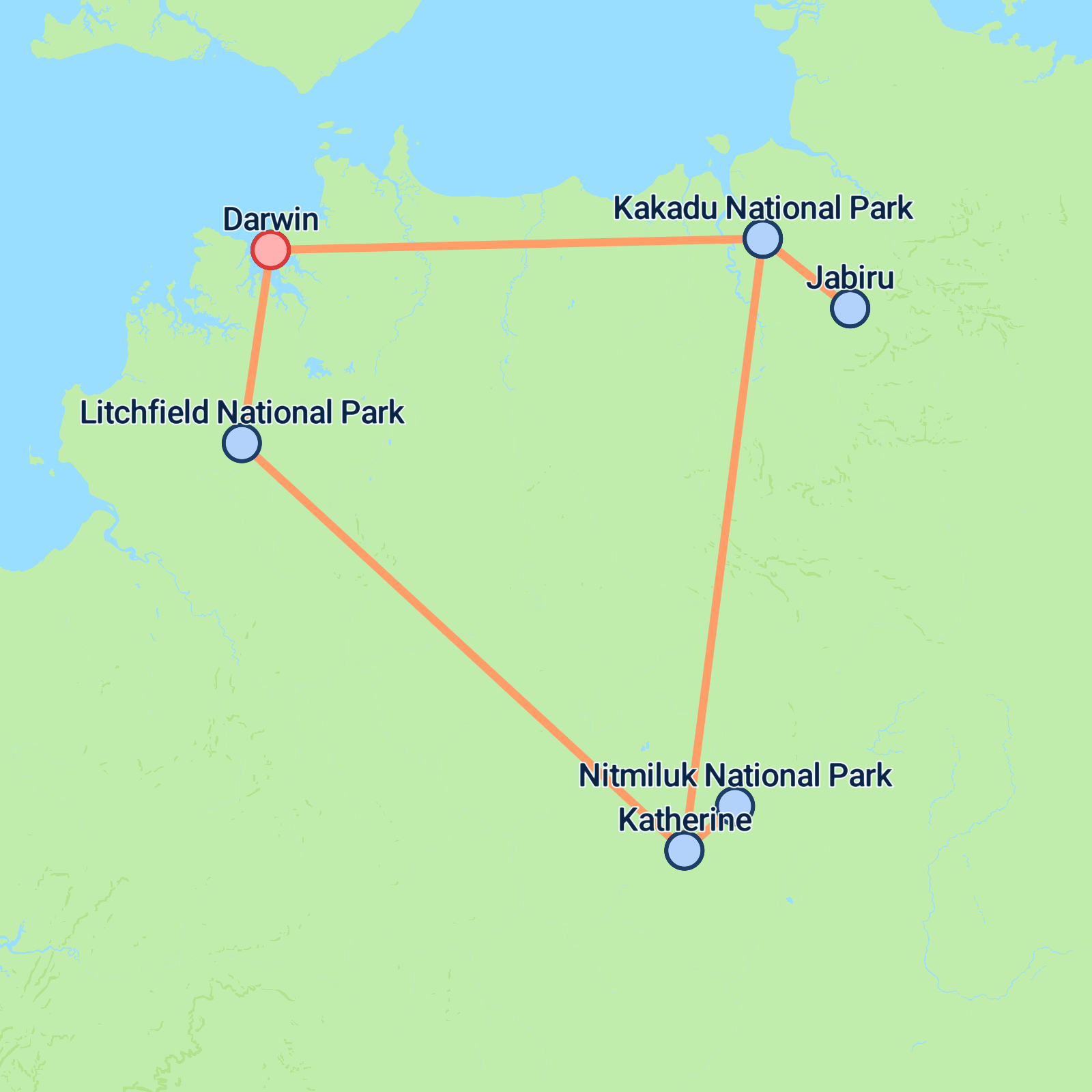 Please note:Please note: You will need to arrive in Darwin the day before the tour begins. The itinerary and route may be adjusted in response to seasonal weather conditions or park closures due to traditional landowner ceremonies.