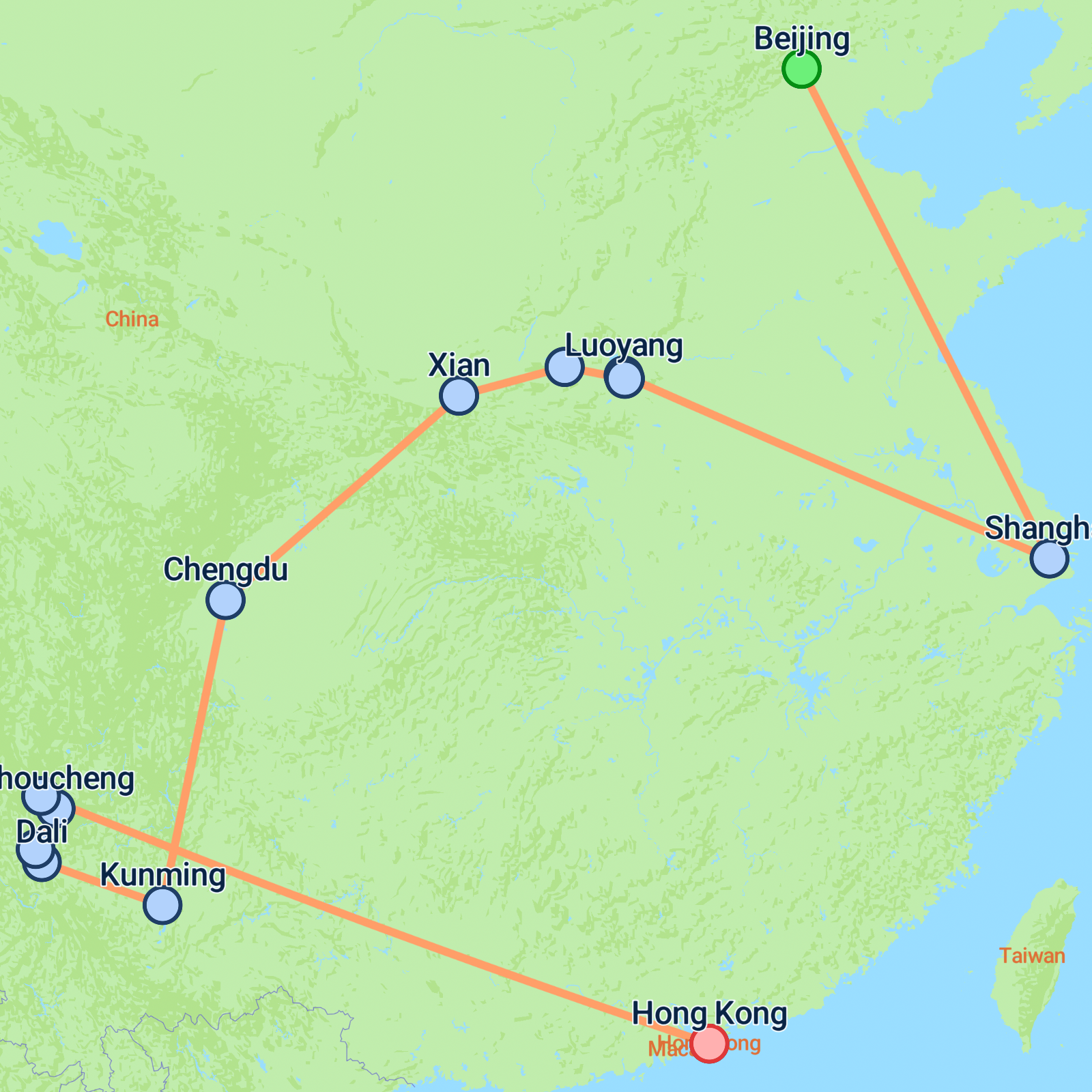 Embark on a captivating 17-day journey through China, beginning in Beijing and concluding in the vibrant city of Hong Kong. Discover the grandeur of Beijings Forbidden City, the iconic Great Wall at Mutianyu, and Shanghais bustling blend of tradition and modernity along The Bund. Youll explore the ancient wonders of Xian, including the fabled Terracotta Army, before enjoying encounters with giant pandas in Chengdu. Witness the awe-inspiring natural beauty of the Stone Forest and Jade Dragon Snow Mountain, and explore the historic cities of Dali and Lijiang. Conclude your adventure in Hong Kong, marvelling at its skyline and rich cultural tapestry.