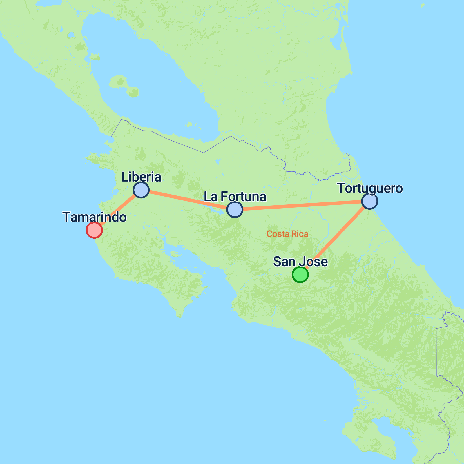 Tamarindo - San Jose. After breakfast, you will be transferred from your hotel in Tamarindo heading back to San Jose, where you will be able to enjoy views of the Pacific Coast along the way.