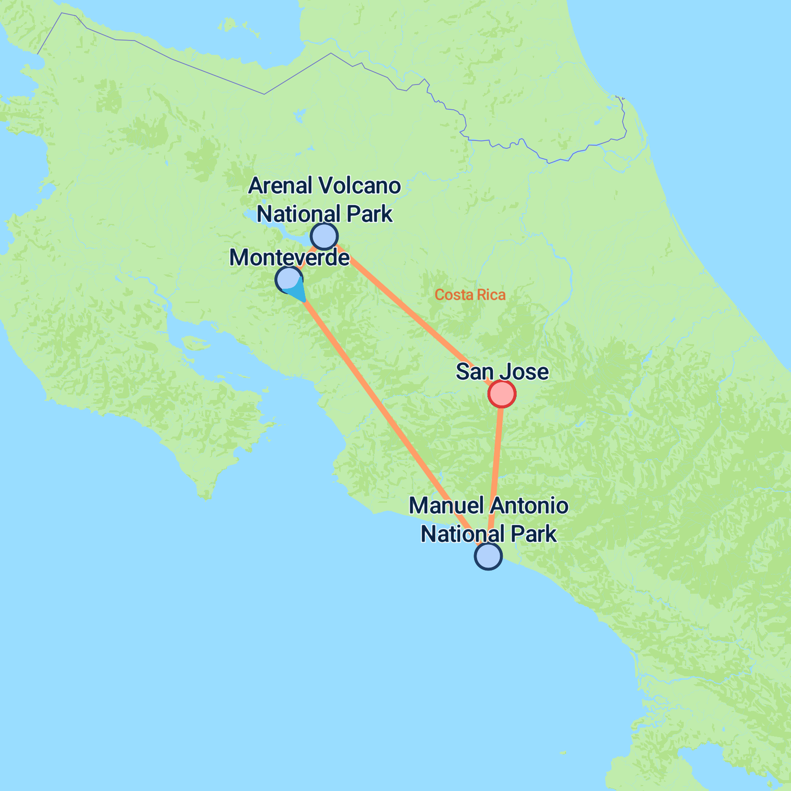 Discover Costa Rica over eight brilliant days, starting and ending in San José. After a warm welcome in the capital, head into the Central Valley’s scenery en route to Arenal and La Fortuna, where you can hike volcanic trails, soak in hot springs, chase waterfalls or add adrenaline with zip-lines and rafting. Next, travel by boat across Lake Arenal to misty Monteverde for cloud forest walks, hanging bridges and coffee or chocolate experiences. Finish on the Pacific coast in Manuel Antonio, mixing laid-back beach time with wildlife-spotting and optional catamaran or mangrove cruises, before returning to San José for your flight home.