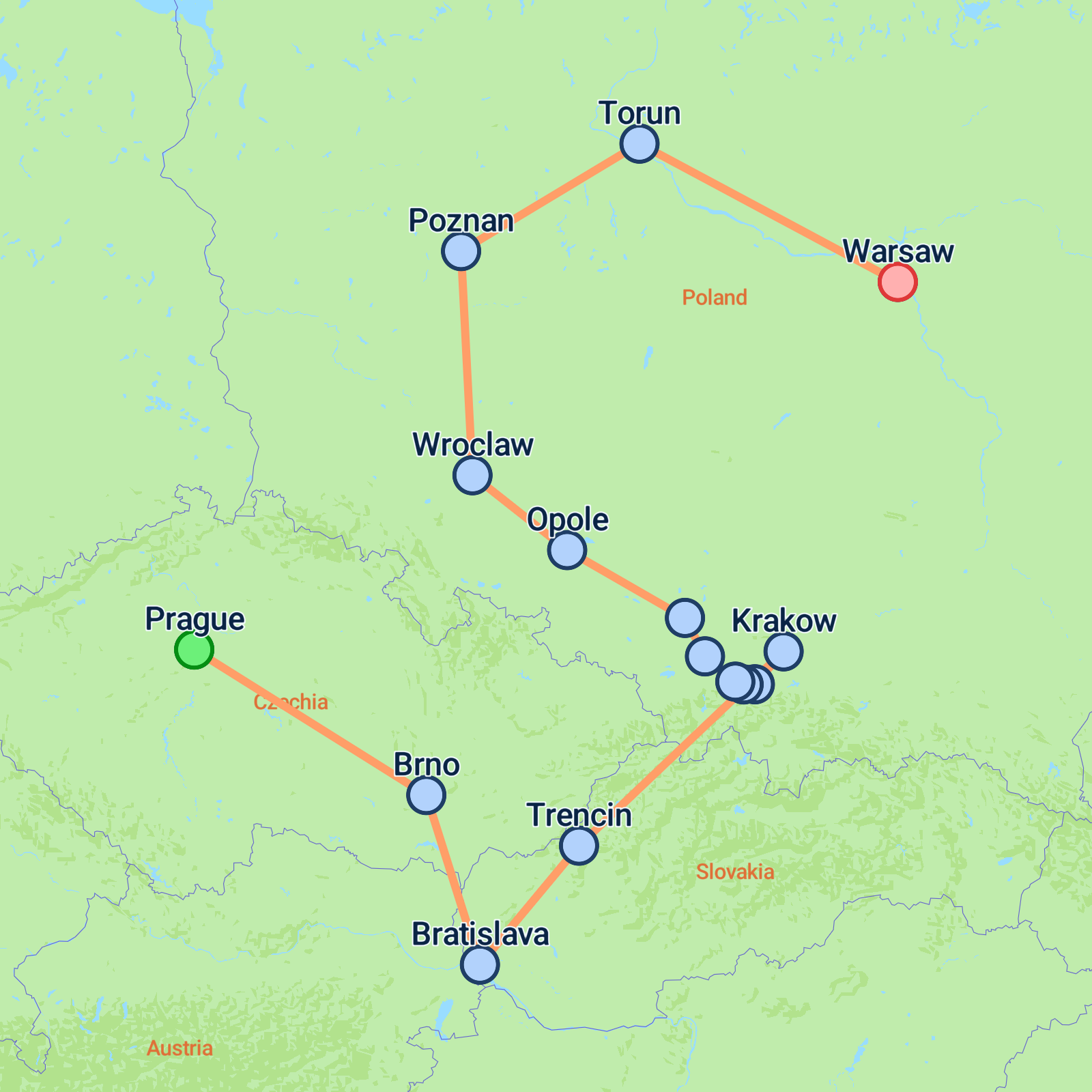 Embark on a 10-day adventure from the enchanting city of Prague to the vibrant heart of Warsaw. Your journey kicks off exploring Prague, renowned for its historic Castle, charming Town Hall Square, and iconic Charles Bridge. As the tour progresses, delve into the modern charm of Brno and the medieval allure of Bratislava, before heading to Krakow, where you'll discover its UNESCO-listed Old Town. The trip includes poignant visits to Auschwitz and the former Jewish ghetto in Warsaw. Experience the scenic splendours of the Polish countryside and enjoy leisurely explorations of historic cities and cultural landmarks a captivating journey through Central Europe awaits.