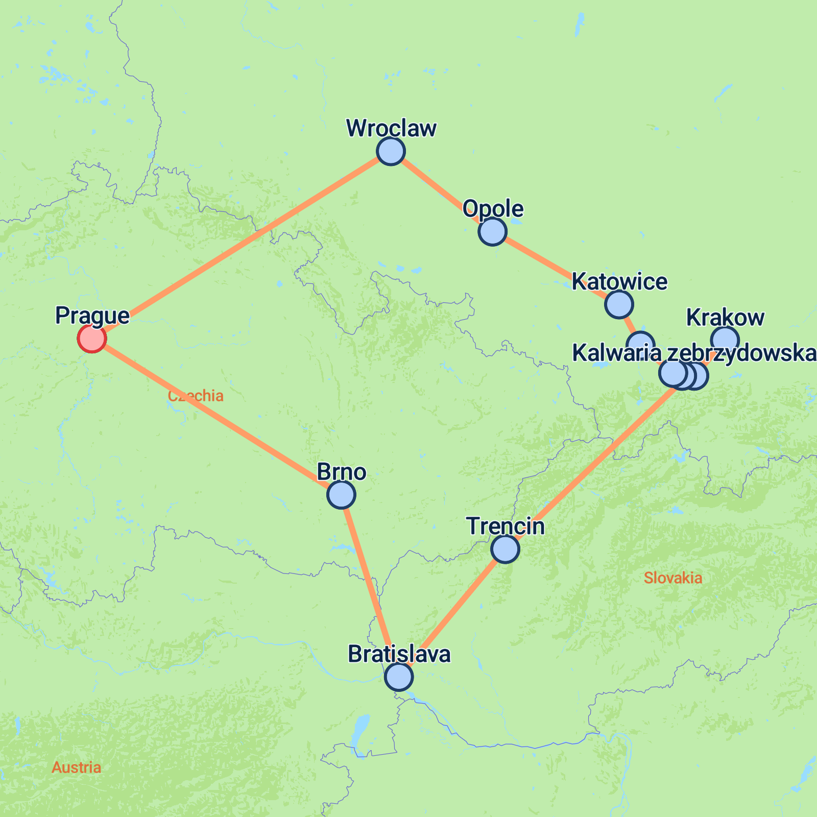 Kick off your 8-day adventure in the enchanting city of Prague and wrap up back in the Czech capital with plenty of memories in between. Delve into the baroque wonders of Prague, visiting its iconic castle and cruising the Vltava River. Journey to Brno, a vibrant hub of modern architecture, before crossing over to Bratislavas charming streets and Trencin's medieval allure. Discover Krakow's rich heritage and its UNESCO-listed Old Town. With stops at the poignant Auschwitz memorial, and picturesque countryside towns, this tour weaves through Poland's heart before returning you to Prague, rich in stories and experiences.
