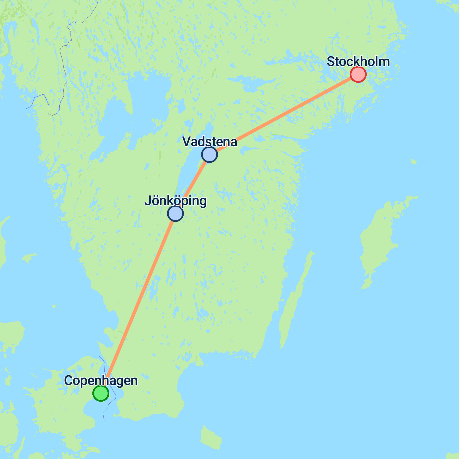 Start in the lively city of Copenhagen and end in stunning Stockholm over a fascinating five-day journey. You'll begin with a guided tour through Copenhagen, admiring sights like The Little Mermaid and colourful Nyhavn harbour. Heading to Sweden, explore the majestic Kronborg Castle, cross into Malm, and enjoy the scenic journey past large lakes and lush forests. Discover the charm of Jnkping, with lunch beside its beautiful lake, before reaching Vadstena with its 14th-century castle. In Stockholm, a city spread over 14 islands, delve into the history of Gamla Stan and enjoy captivating views from Fjllgatan. Explore museums or just soak in the city's vibrant atmosphere.