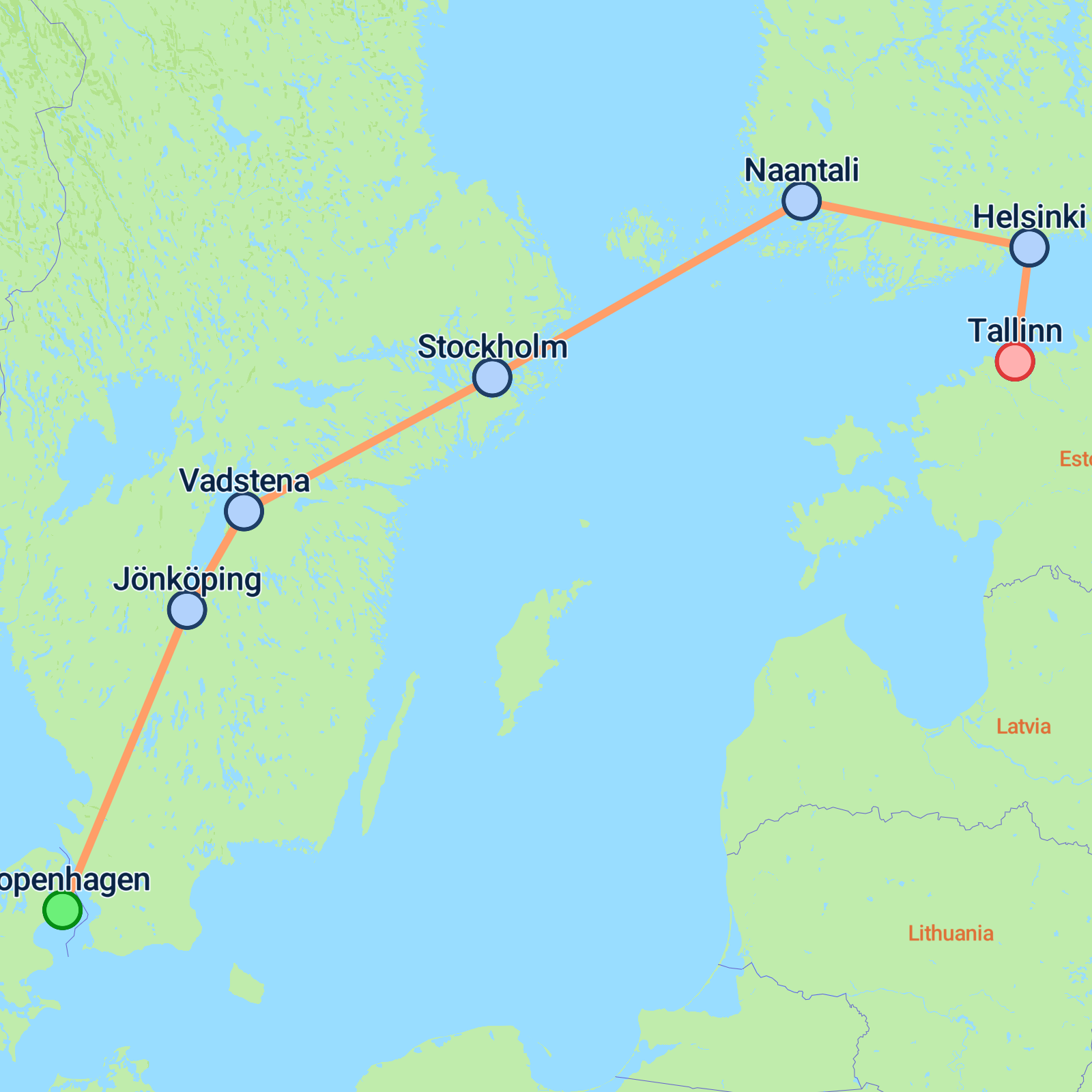 Set off on a 9-day adventure from Copenhagen to Tallinn, exploring the Nordic and Baltic gems in style. Begin in Copenhagen, where you'll discover iconic sites like The Little Mermaid and Amalienborg Palace. Transition to Sweden, soaking in the stunning landscapes en route to Stockholm, a city spread across 14 islands with its medieval old town, Gamla Stan. Sail overnight to Finland, experiencing the allure of the land Islands, and uncover Helsinkis rich architecture and vibrant markets. Cruise to Estonia's capital, Tallinn, known for its well-preserved medieval heart. This journey offers a perfect blend of culture, history, and breathtaking scenery.