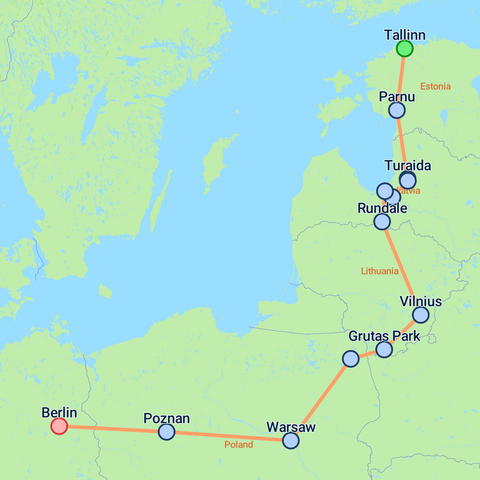 Kick off your adventure in the enchanting city of Tallinn, Estonia, on this 11-day tour packed with history, culture, and breathtaking scenery. You'll explore Tallinns medieval charm before heading to the seaside town of Parnu and the historic Turaida Castle. Discover the vibrant capital of Riga with its stunning Art Nouveau architecture. Journey through Lithuania, stopping at the impressive Hill of Crosses and the picturesque Trakai Castle. Delve into Polands rich past in Warsaw before soaking up the vibrant atmosphere of Poznan. Your trip concludes in Berlin, Germany, where youll enjoy its historic and modern marvels.