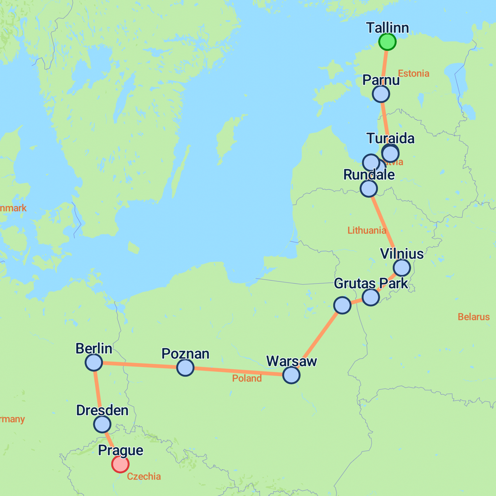 Embark on a captivating 13-day journey from Tallinn to Prague, where history and culture come alive. Begin your adventure in Tallinn, where you'll wander medieval streets and enjoy its rustic charm. Traverse the serene landscapes to Parnu and be enchanted by Turaida Castle before arriving in Riga, a city boasting a vibrant cultural centre and stunning Art Nouveau architecture. In Lithuania, marvel at the thousands of crosses on the Hill of Crosses and the picturesque Trakai Castle. Continue to Warsaw and Berlin, rich in historical significance and modern flair. Conclude your tour in the architectural wonders of Dresden and end amidst the Baroque splendour of Prague, ensuring this is a trip to remember.