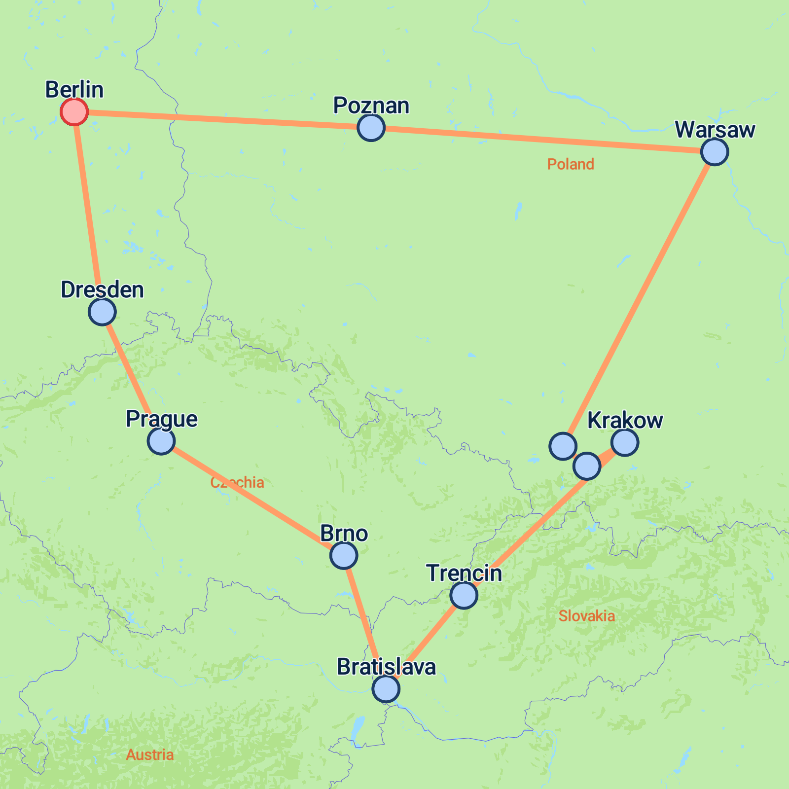 Kick off an unforgettable adventure in Berlin, diving into the vibrant culture of Germanys capital. This 11-day tour whisks you through remarkable highlights, from the palaces of Potsdam to the grandeur of Dresden. In Prague, immerse yourself in its gothic charm and perhaps enjoy a cruise on the Vltava River. Journey onwards to Bratislavas historic streets, and Krakows rich medieval history. An emotional visit to Auschwitz offers a poignant reflection on history. In Warsaw, the beautifully restored Old Town awaits before you wrap up your journey, heading back to the lively streets of Berlin.