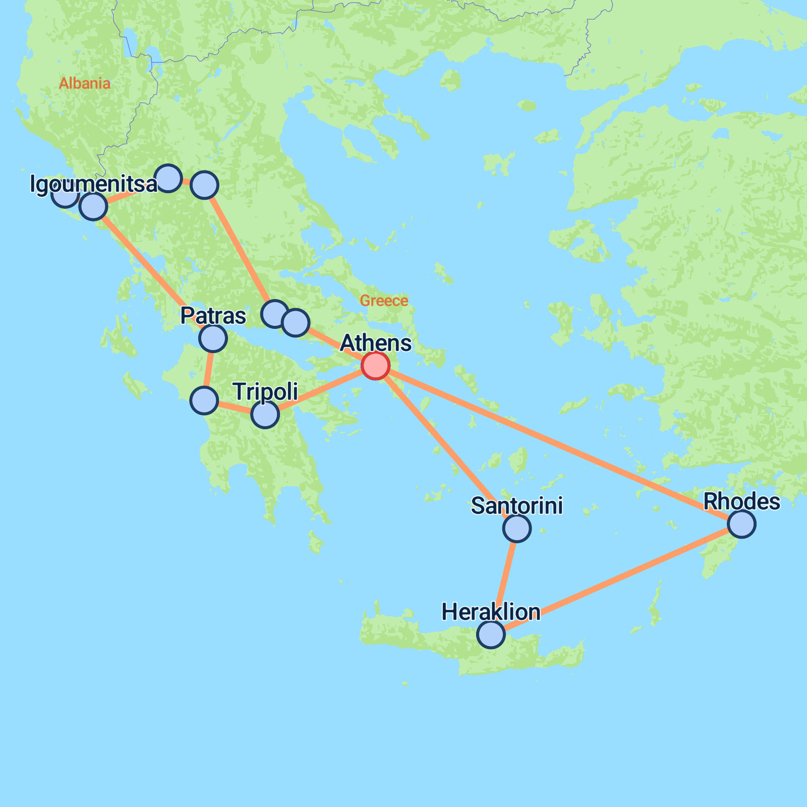 Embark on a captivating 14-day adventure starting and ending in Athens that takes you through the highlights of Greece. Youll explore ancient wonders like the Corinth Canal and the iconic Archaeological Site of Olympia. Discover the stunning Meteora monasteries "suspended in the air" and delve into the charming streets of Tripoli and Patras. Sail to Corfu and the intriguing island of Rhodes, before enjoying the Venetian charm of Crete with its historical towns of Rethymno and Chania. Savour breathtaking views in Santorini, visit the Palace of Knossos, and immerse yourself in Athens' vibrant culture for an unforgettable Greek odyssey.