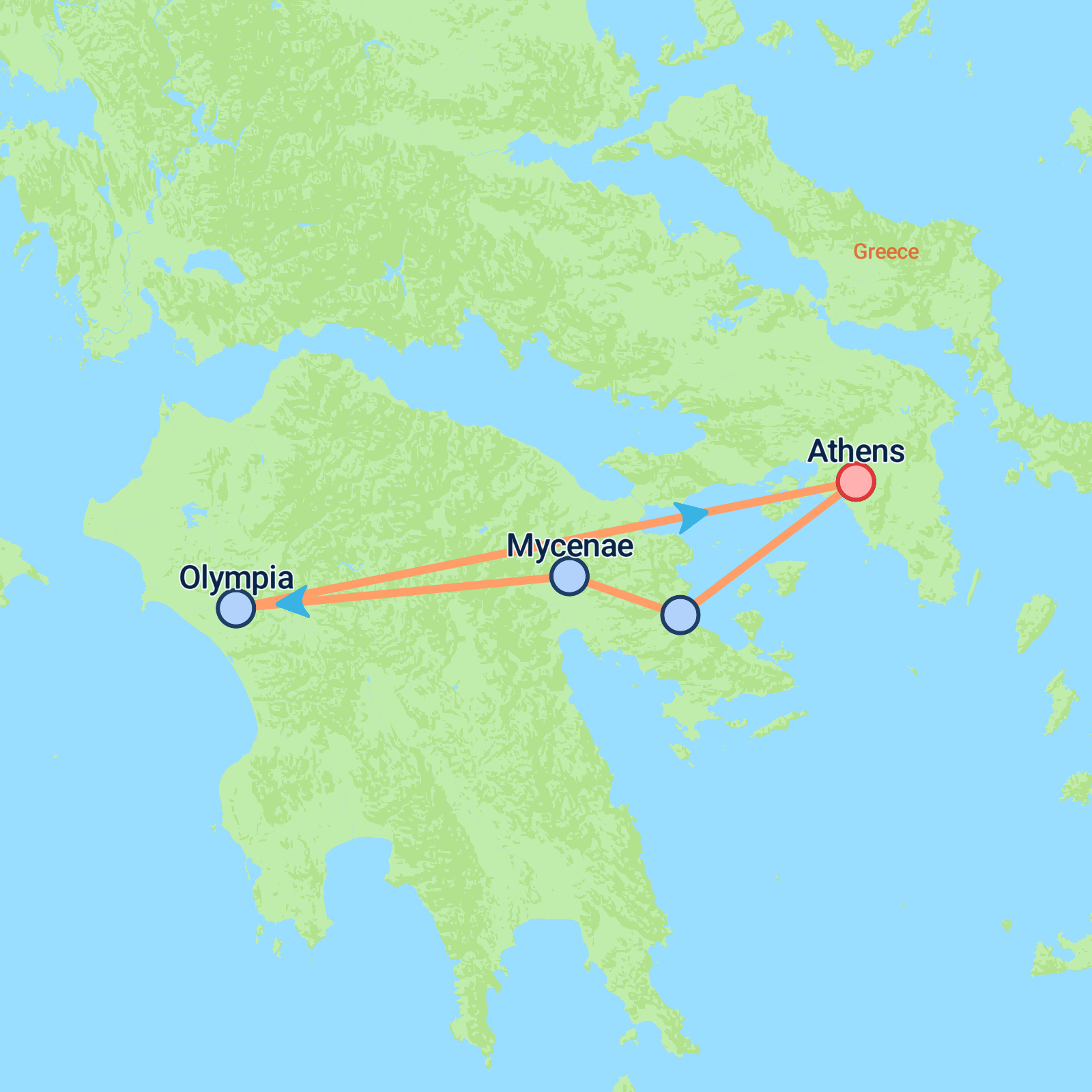 This 3-day tour starts in Athens and finishes at Athens Airport, offering a perfect blend of history, stunning coastal views, and ancient wonders. Youll begin with a scenic drive along the Athenian Riviera, visiting the iconic Temple of Poseidon at Cape Sounio. Then, journey through the Corinth Canal and explore the remarkable ancient theatre of Epidaurus, the charming town of Nauplia, and the legendary archaeological sites of Mycenae. The tour concludes with a full day in Olympia, where youll discover the birthplace of the Olympic Games and its fascinating ruins before returning to Athens. A compact trip packed with culture and beautiful landscapes.
