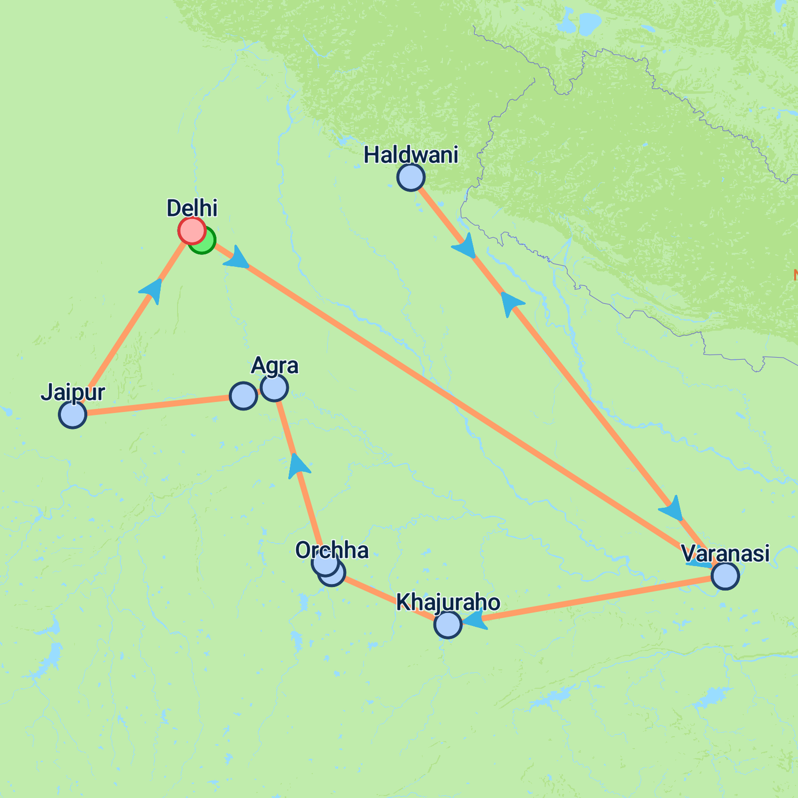 This 9-day tour starts and ends in New Delhi, offering a rich journey through northern Indias cultural and historical gems. Youll explore the bustling streets and iconic Jama Masjid of Delhi, experience the spiritual rituals along the Ghats of Varanasi, and admire the exquisite temples of Khajuraho. The itinerary includes visits to the medieval town of Orchha, the majestic Taj Mahal and Agra Fort, and the fascinating deserted city of Fatehpur Sikri. In Jaipur, expect to see the Amber Fort, Hawa Mahal and the royal City Palace. The tour balances vibrant city life with stunning architecture and timeless traditions.