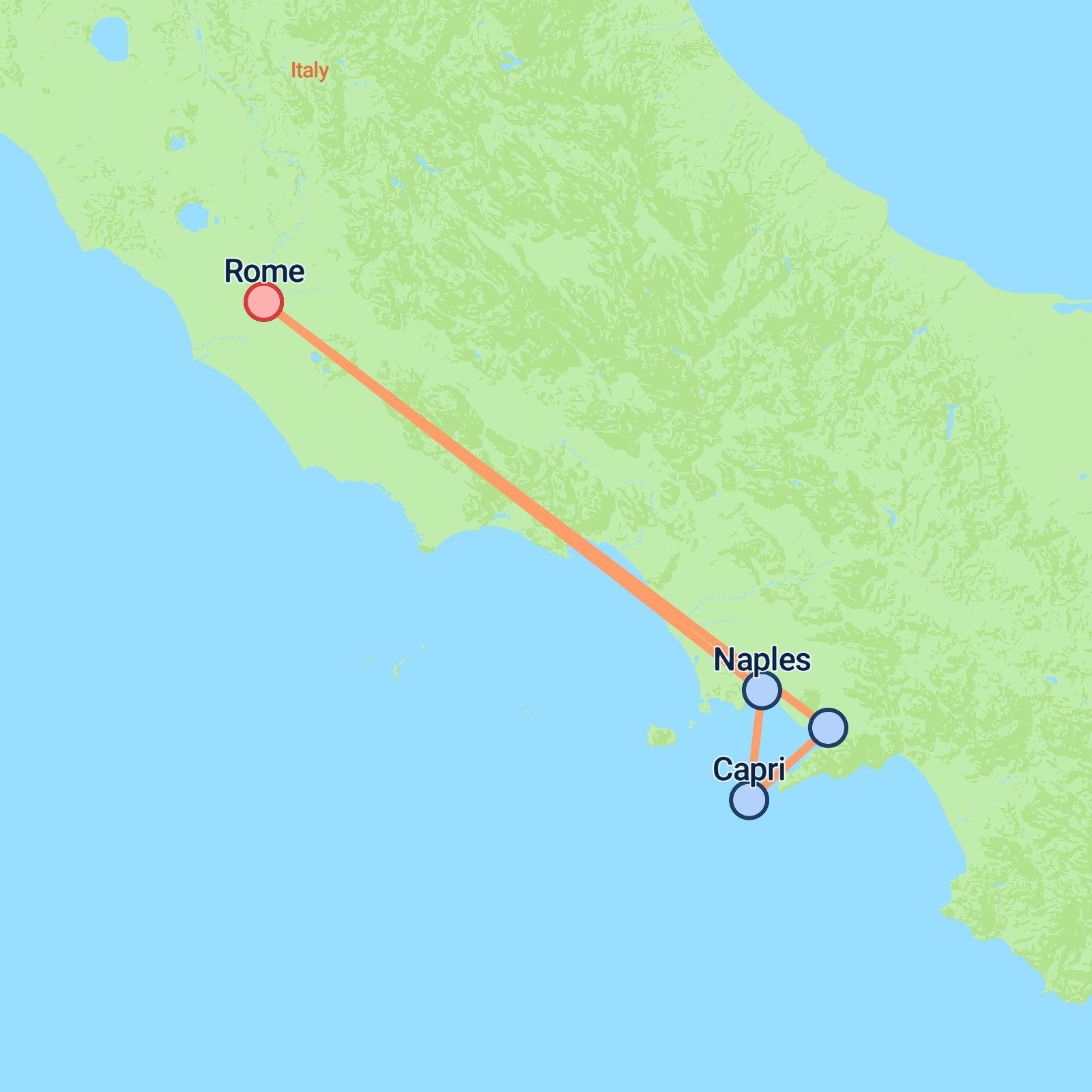 Kick off your 3-day Italian adventure from Rome to Naples, diving into a mix of culture, history, and jaw-dropping landscapes. In Naples, soak up the city's historical energy before hopping on a ferry to the island of Capri. Here, you can explore stunning natural beauty and maybe catch a boat to the Grotta Bianca or take in views from the Gardens of Augustus. Back on the mainland, walk through Pompeii, frozen in time by Mount Vesuvius. Wrap up your journey with a return to Rome filled with unforgettable memories. It's the perfect blend of vibrancy and history.