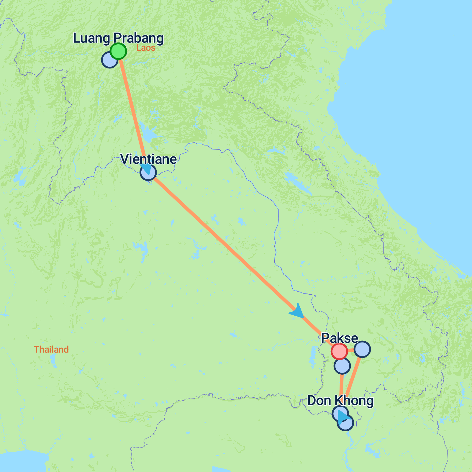 PRIVATE TOUR: Discover Laos on this nine-day adventure beginning in Luang Prabang and ending in Pakse. You’ll explore the city by bike, visit shimmering temples and cycle up Phou Si Hill before spending a day learning traditional rice-farming techniques and walking to the stunning Kuang Si Falls. An e-bike trip takes you through remote villages and waterfalls, before you continue south by train to Vientiane for a relaxed tuk-tuk tour. Fly to Pakse to explore the Bolaven Plateau, the 4000 Islands and pre-Angkorian Wat Phou, combining culture, scenery and local life throughout this varied journey.