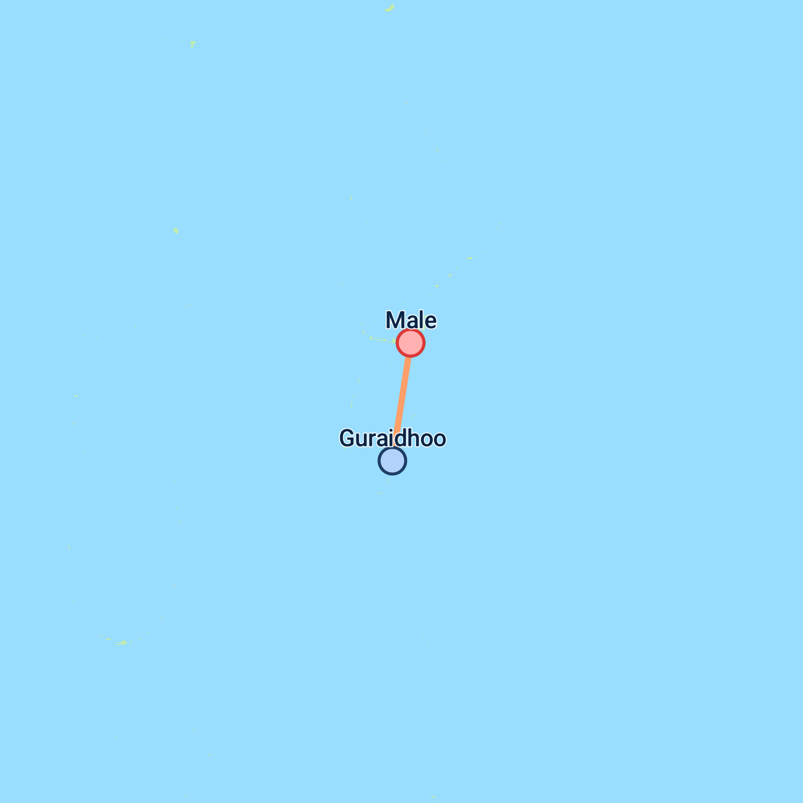 Male - Guraidhoo. Arrive at Male International Airport before 9 AM. Once you have arrived, you will be met by your guide and taken on a tour of Malé at 9:30 AM. You’ll visit key landmarks including the fish market, local market, the President’s Palace, and the historic Friday Mosque. As you wander through the capital’s narrow streets, you’ll gain a deeper understanding of local life, culture, and history.