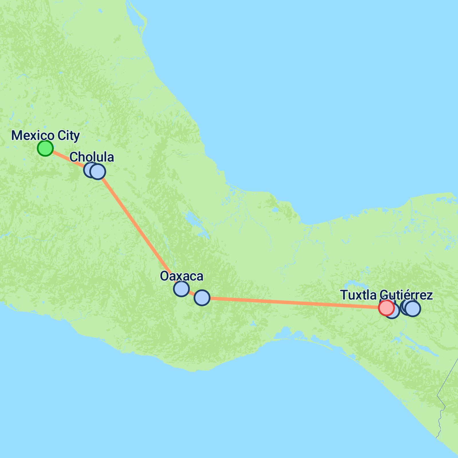 On the final day of your journey, we will arrange your transfer from San Cristobal de las Casas to Tuxtla Gutirrez airport. Depending on your flight schedule, you'll head to the airport to catch the most suitable flight to Mexico City or your next destination. We hope you've had a memorable experience exploring the rich cultural and natural wonders of this vibrant region. Safe travels!