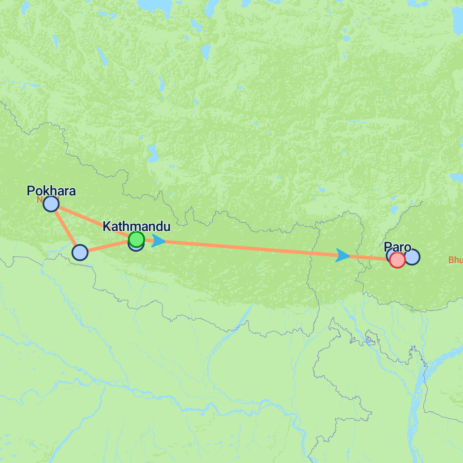 Discover Nepal and Bhutan on a memorable 10-day journey that begins in Kathmandu and ends in Paro. You’ll explore the medieval squares and lively bazaars of the Kathmandu Valley before heading to Chitwan for wildlife encounters and peaceful river moments. Continue to scenic Pokhara for lake views and a sunrise at Sarangkot, then fly to Bhutan to experience Thimphu’s monasteries, giant Buddha statue and traditional crafts. Finish in Paro with a rewarding hike to the iconic Tiger’s Nest and time to meet local families. A rich blend of culture, scenery and adventure awaits.