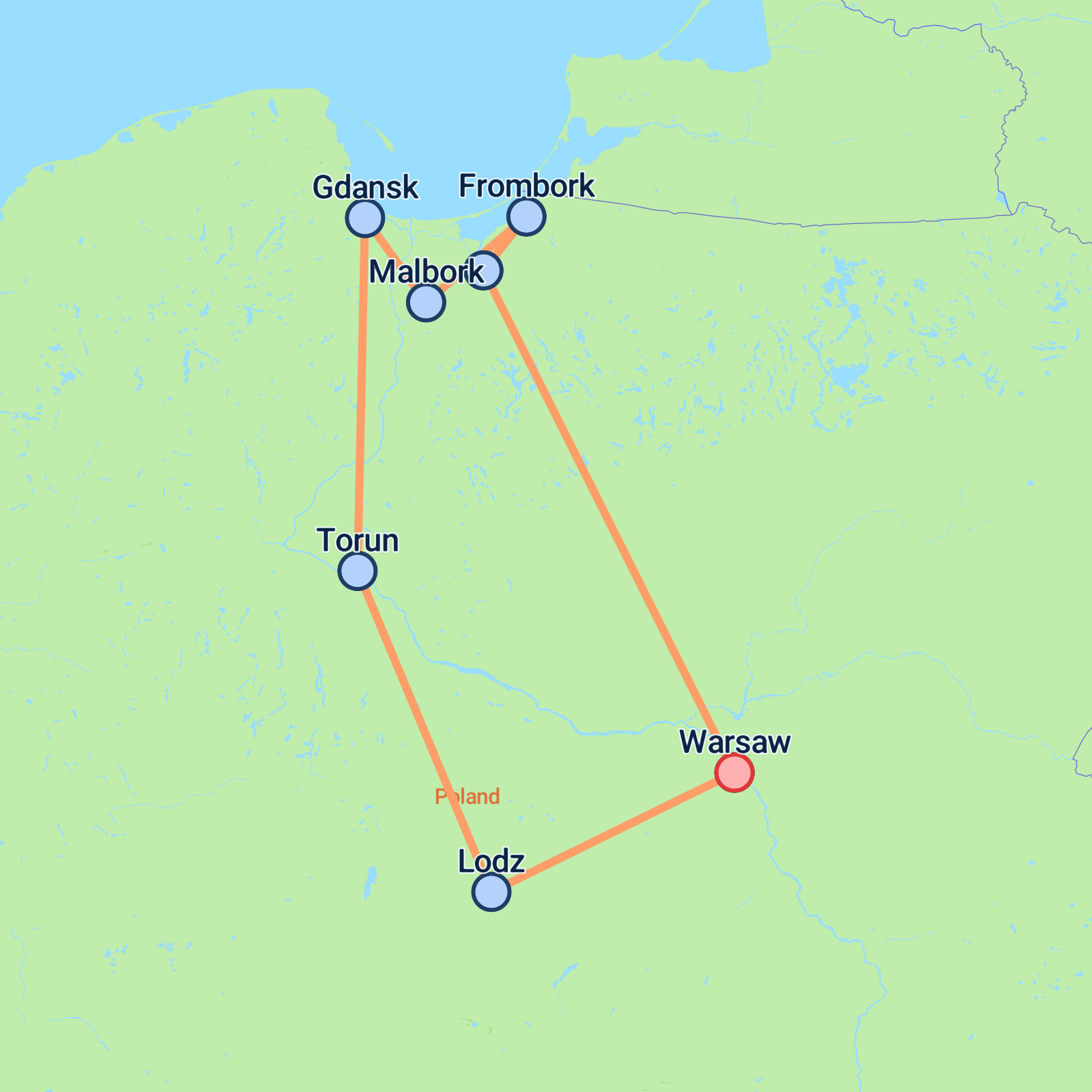 Embark on a 6-day adventure starting and ending in Warsaw, immersing yourself in Polish history and culture. Begin by exploring Lodz, where you'll visit a museum dedicated to the Jewish ghetto and enjoy some time at Manufaktura, a refurbished industrial complex. Journey to Torun, Copernicus's birthplace, before heading to the charismatic city of Gdansk. Delve into history with visits to Malbork Castle and the European Solidarity Centre, while also enjoying the seaside charm of Sopot. Conclude with a panoramic tour of Warsaw's beautifully restored old town and vibrant modern attractions. Expect an enriching blend of culture, history, and scenic beauty.