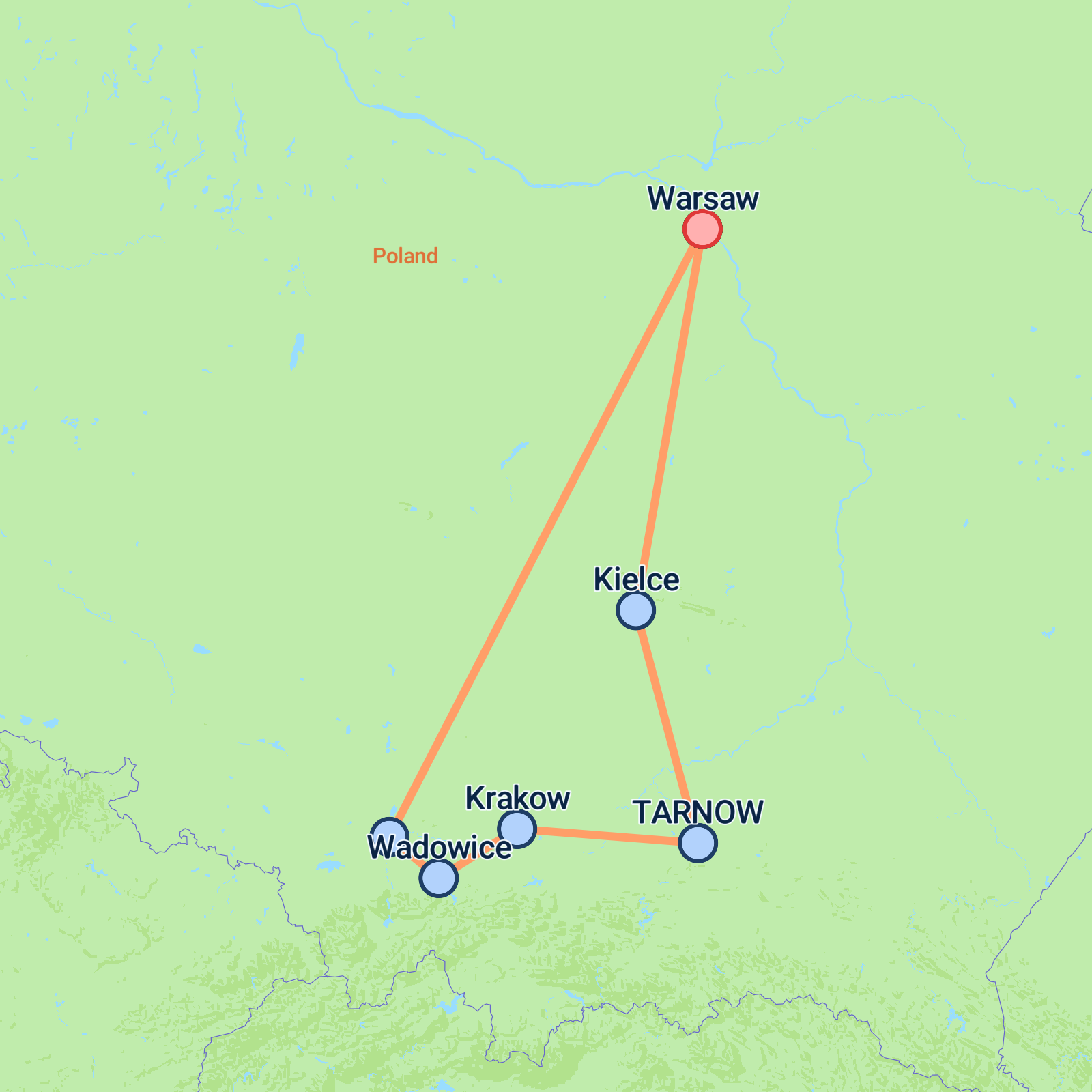 Embark on a fascinating 5-day journey from Warsaw, exploring Poland's vibrant history and culture. Begin in the lively capital, where you'll delve into the cobbled streets and historic charm of its UNESCO-listed Old Town. Discover Warsaw's blend of modernity and tradition, with highlights like the Royal Palace and Lazienki Park. As you travel through the picturesque landscapes of Lesser Poland, explore Kielce's elegant centre and Tarnow's medieval streets. In Krakow, relish the grandeur of Wawel Castle and the bustling Main Market Square. Reflect at the poignant Auschwitz-Birkenau site before returning to Warsaw, cherishing unforgettable experiences.