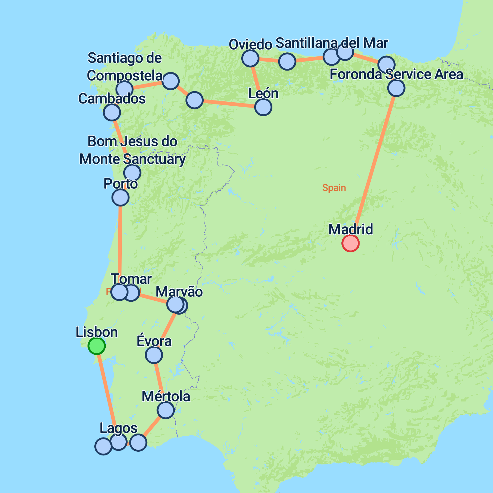Embark on a 12-day adventure from Lisbon to Madrid, delving into the charming culture and stunning scenery of Portugal and northern Spain. Begin in Lisbon, where youll soak up the citys vibrant atmosphere and historical allure. Journey through the Algarve to discover the coastal beauty of Albufeira and the rugged landscapes of Cape St. Vincent. The tour highlights include a quaint cruise along the Douro River in Porto, exploring Galicias famed Santiago de Compostela, and a taste of Bilbaos artistic edge. Wander through Madrids iconic sights before this unforgettable experience concludes. Expect fascinating cultures, diverse landscapes, and enchanting cities.