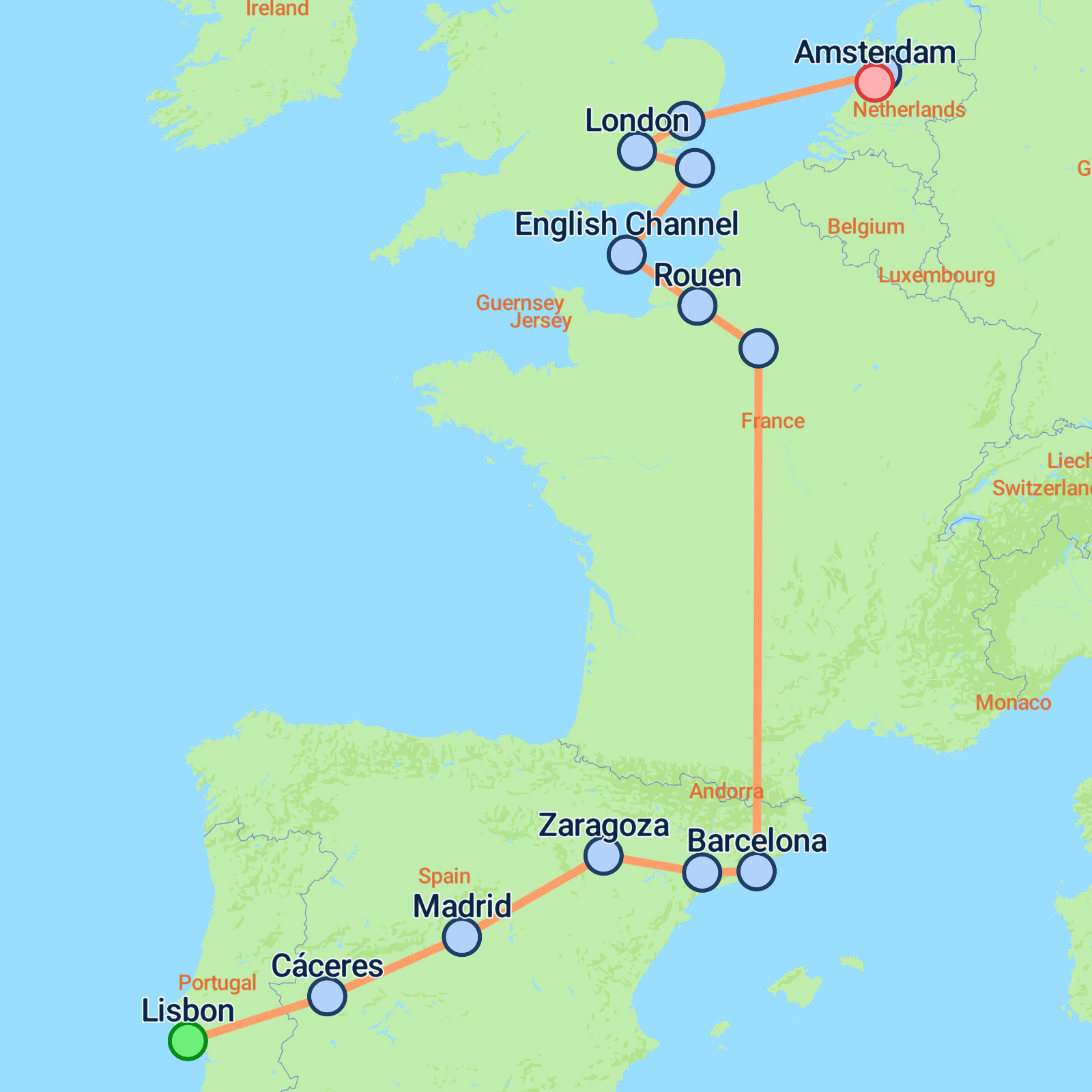Begin your adventure in the picturesque city of Lisbon, as you embark on a captivating 14-day journey that concludes in the charming streets of Amsterdam. You'll explore the mosaic of vibrant cultures and rich histories, beginning with the enchanting alleys of Lisbon and the bold navigators' tales in Belem. As you cross into Spain, expect to see the medieval wonders of Cceres and the bustling life of Madrid. Discover Zaragoza's majestic cathedral and marvel at Poblet Abbey's serene beauty. Barcelona's modernist marvels and Paris' iconic landmarks, including the Eiffel Tower and Palace of Versailles, promise unforgettable moments. In London, uncover the city's culture with a walk through its iconic sites and vibrant neighbourhoods. Finally, experience the quaint charm of Volendam before bidding farewell in Amsterdam, with its iconic windmills and rich art heritage. This tour is a perfect blend of history, culture and breathtaking scenery.