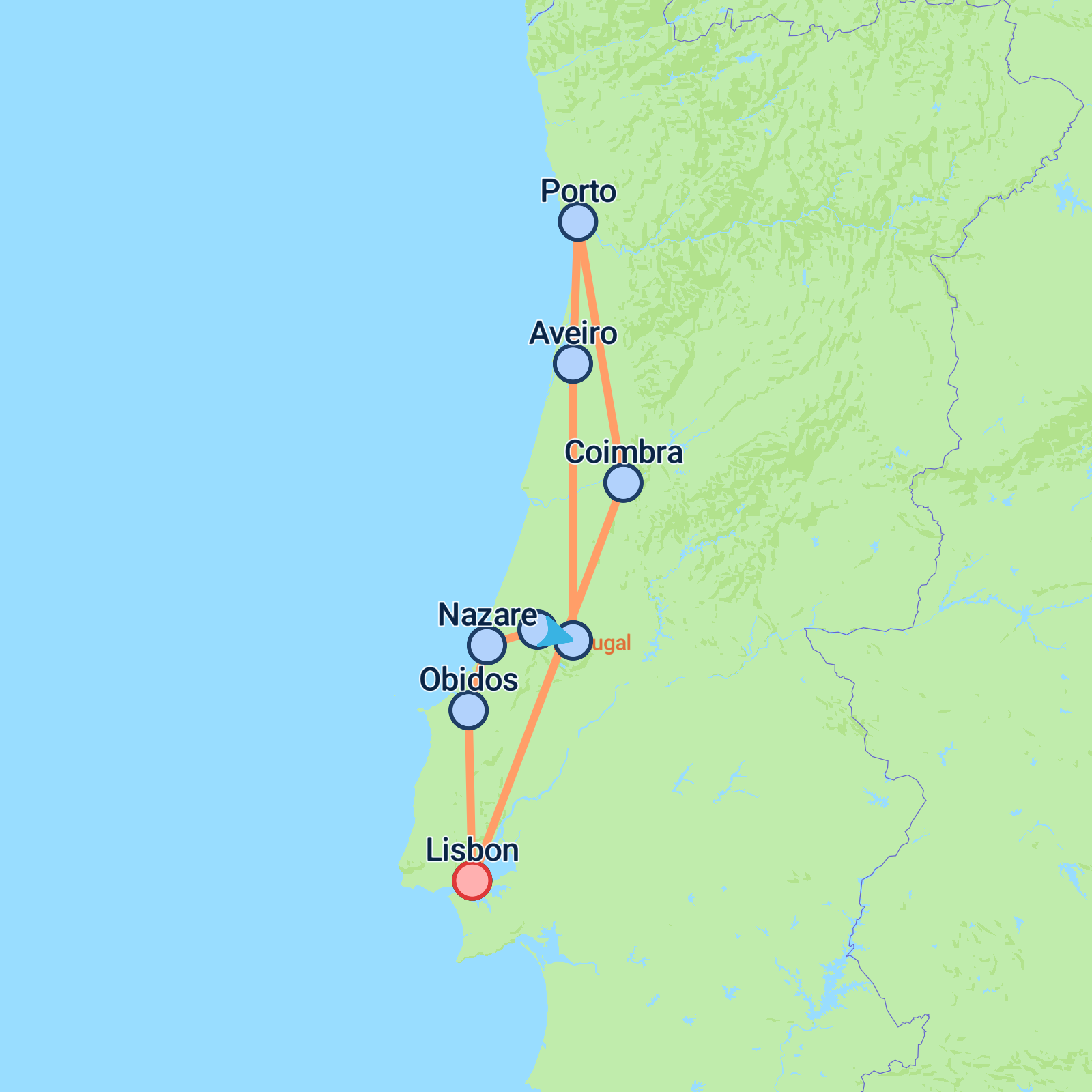 Spend seven memorable days exploring Portugal on a round-trip journey beginning and ending in Lisbon. Enjoy time in the capital discovering Belem’s UNESCO-listed Jeronimos Monastery, pastel de Belem tastings and panoramic viewpoints before heading north through medieval Obidos, the coastal charms of Nazare and the impressive Batalha Monastery. Continue on to Fatima, Aveiro’s canal-lined centre and Porto’s riverside districts, with plenty of leisure time to sample local food and wine. Along the way, expect beautiful scenery, historic towns and a relaxed pace before returning to Lisbon for your flight home.