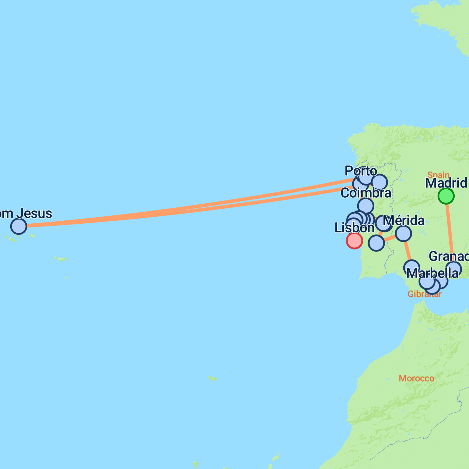 Embark on a vibrant 12-day adventure from Madrid to Lisbon that captures the essence of Spain and Portugal. Start off exploring the lively streets of Madrid and picturesque Retiro Park, then delve into Granada's historic charm with visits to landmarks like the Alhambra. Discover the coastal allure of Malaga and Marbella before delighting in Seville's flamenco rhythms. Soak in Roman history in Mrida and wander through Portugal's enchanting vora. Marvel at the dramatic landscapes from Marvo to Fatima, and cruise along Porto's Douro River. Top off your journey with a taste of Lisbon's rich culture. Expect stunning scenery, rich heritage, and memorable experiences throughout.