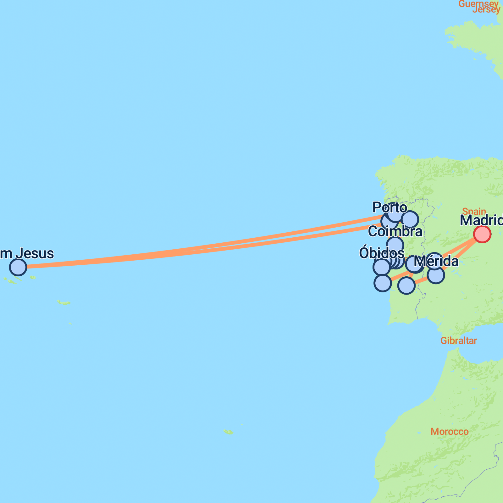 Embark on an eight-day adventure from Madrid to Lisbon, packed with cultural experiences and stunning landscapes. Begin in Madrid and explore Mrida's world-renowned Roman Theatre, then head to vora with its whitewashed streets and Renaissance palaces. Wander Marvo's walled town and discover Castelo de Vide's historic Jewish quarter. In Porto, enjoy a Douro River cruise, and explore Braga's religious heritage followed by Guimares' palace. Stroll through Coimbra's steep streets and savour coastal views in Nazar. Visit Lisbon's iconic districts, and cap off your journey across the picturesque Alentejo to Madrid, soaking in historic Cceres along the way. Expect a vibrant blend of history, culture, and scenic beauty.