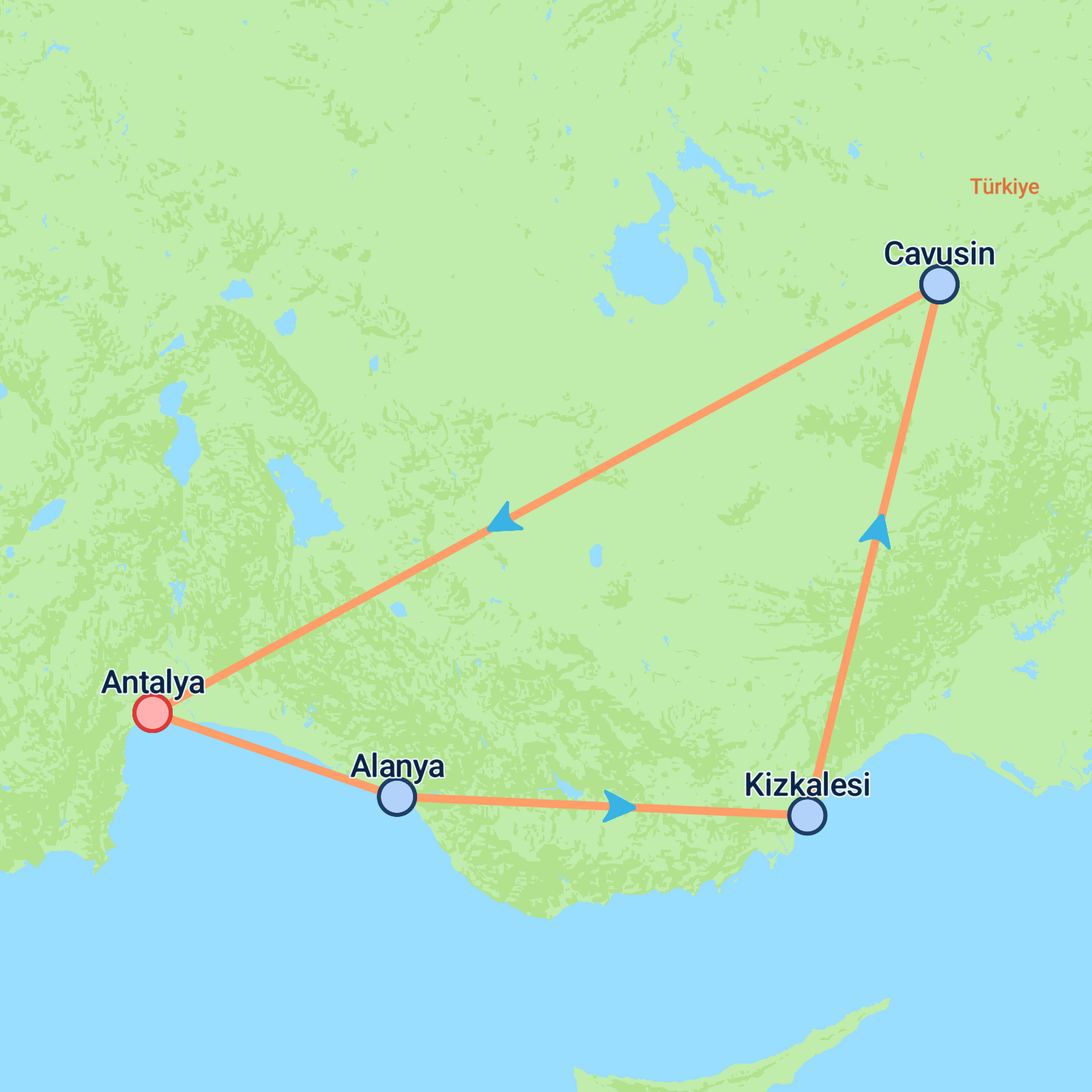After breakfast, check out of your hotel and drive to Antalya Airport to return your car, concluding your journey.