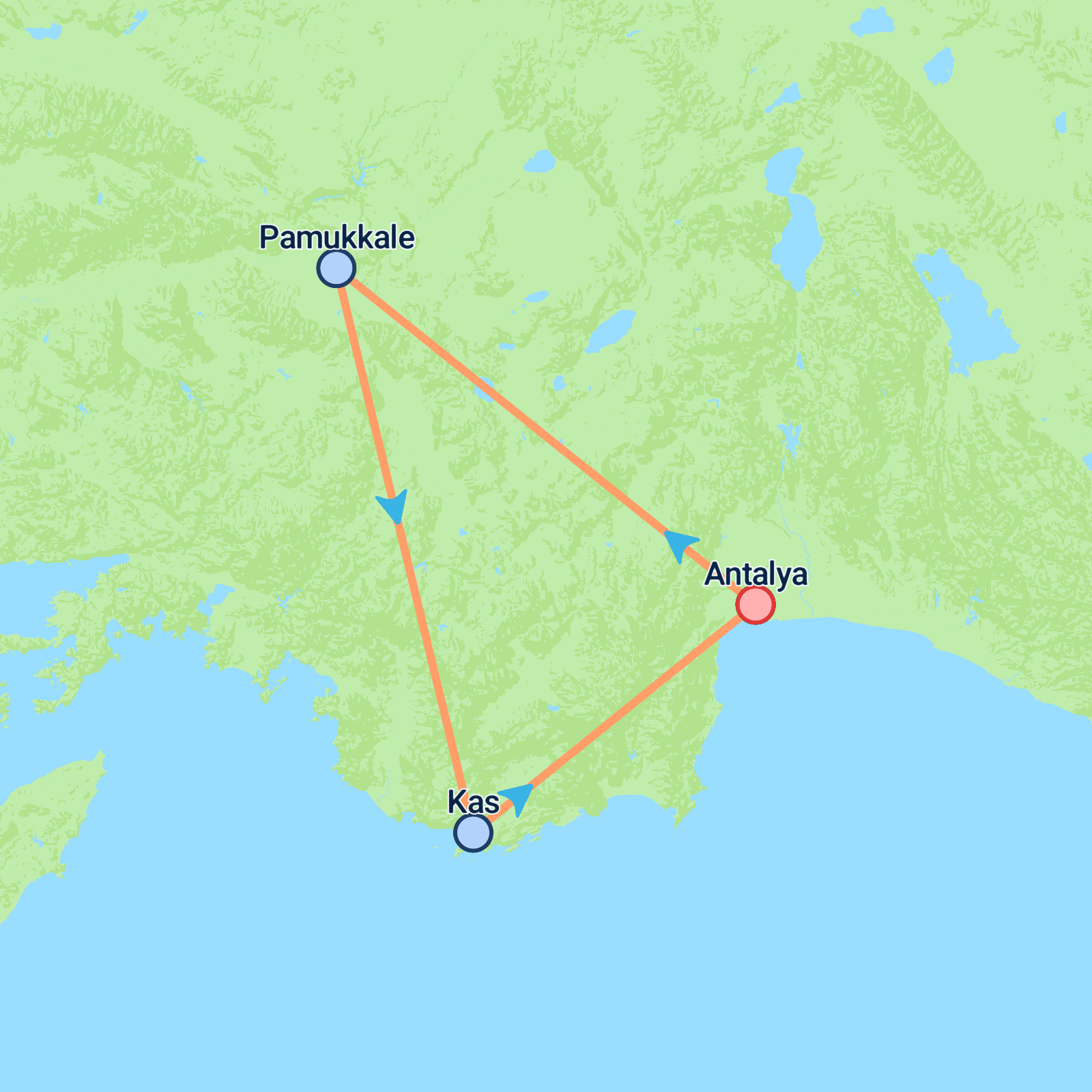 This 6-day tour starts and ends in Antalya, offering a fantastic blend of history, nature, and coastal charm. Youll explore ancient cities like Thermessos, Hierapolis, and Tlos, wander the stunning white terraces of Pamukkale, and relax in thermal pools. Along the way, discover the serene Salda Lake and the beautiful Saklikent Gorge. The charming town of Kas provides a laid-back vibe with nearby beaches and a ferry trip to a Greek island. Highlights include a boat trip to Kekovas sunken city, visits to historic sites like Myra and St. Nicholas Church, plus plenty of opportunities to swim and soak up the Mediterranean atmosphere.