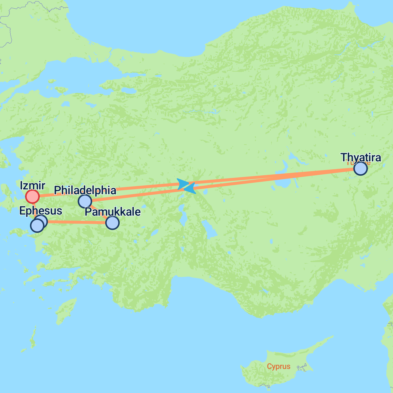 This 4-day tour starts in Izmir and finishes in the same city, offering a fascinating journey through ancient history and stunning landscapes. Youll explore the impressive ruins of Pergamum and Thyatira, wander through the thermal terraces of Pamukkale, and discover the remarkable sites of Sardis, Philadelphia, and Laodicea. Highlights include walking the marble streets of Ephesus, visiting the House of the Virgin Mary, and seeing the Temple of Artemis. With a great mix of archaeological wonders and natural beauty, this trip is perfect for history buffs and those who love a bit of culture and scenic charm along the way.