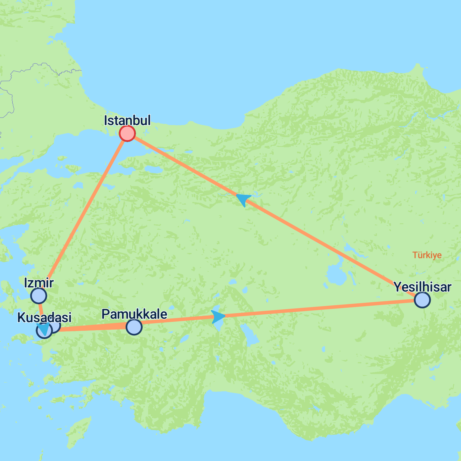 This 8-day tour starts in vibrant Istanbul and finishes back there after exploring some of the countrys most iconic sites. Youll cruise the Bosphorus, visit the stunning Topkapi Palace and Blue Mosque, and wander the bustling Grand Spice Bazaar. Then its off to Kusadasi for a deep dive into ancient Ephesus, charming Sirince village with its fruit wines, and the surreal terraces of Pamukkale. The adventure continues in Cappadocia, where youll explore underground cities, fairy-tale rock formations, and traditional pottery workshops. With a perfect mix of history, culture, and natural beauty, this trip offers a rich and varied experience at a relaxed pace.