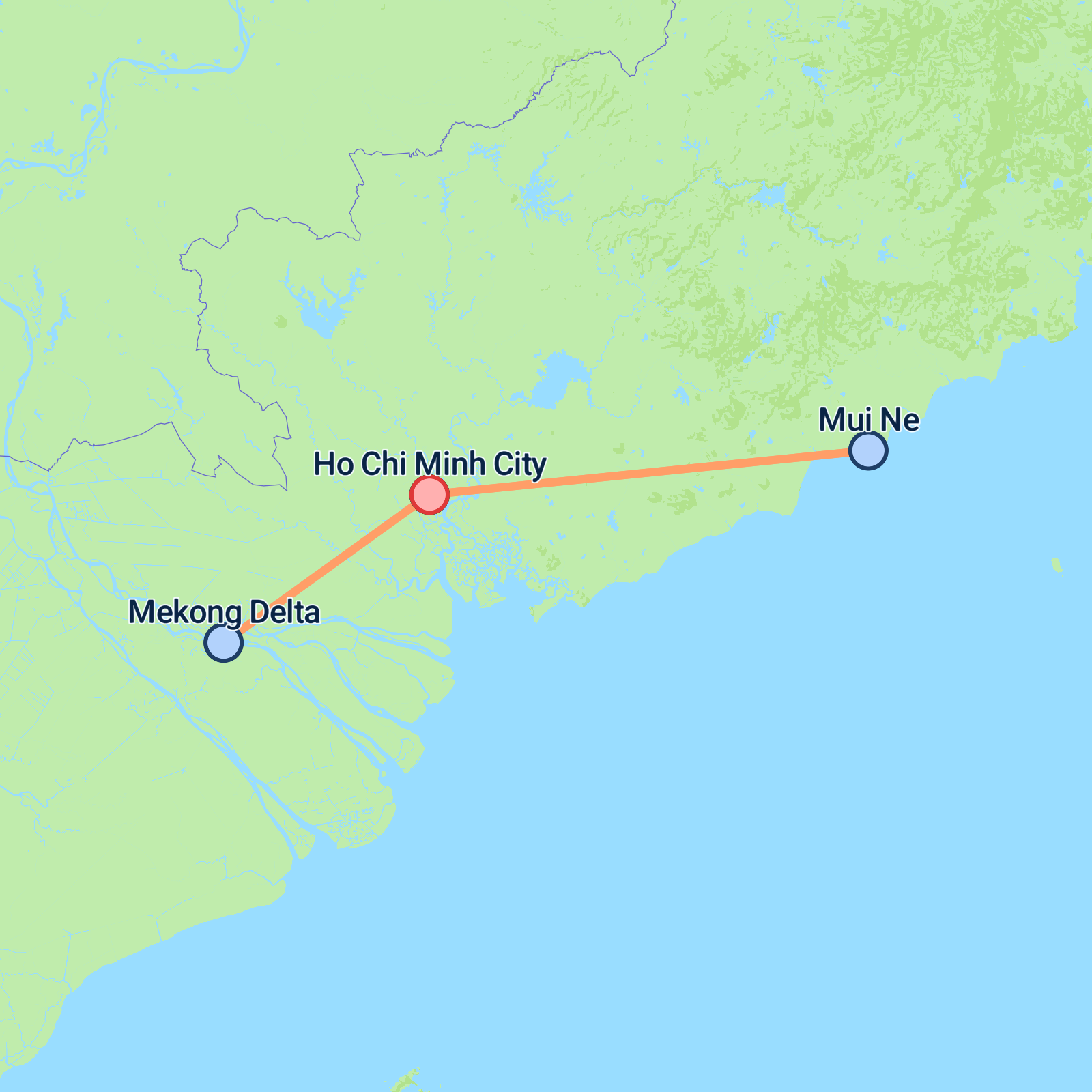 Ho Chi Minh City - Mui Ne. We transfer to Mui Ne by private car with our guide – a journey of approximately 3.5 to 4 hours. The rest of the day is at leisure in Mui Ne.